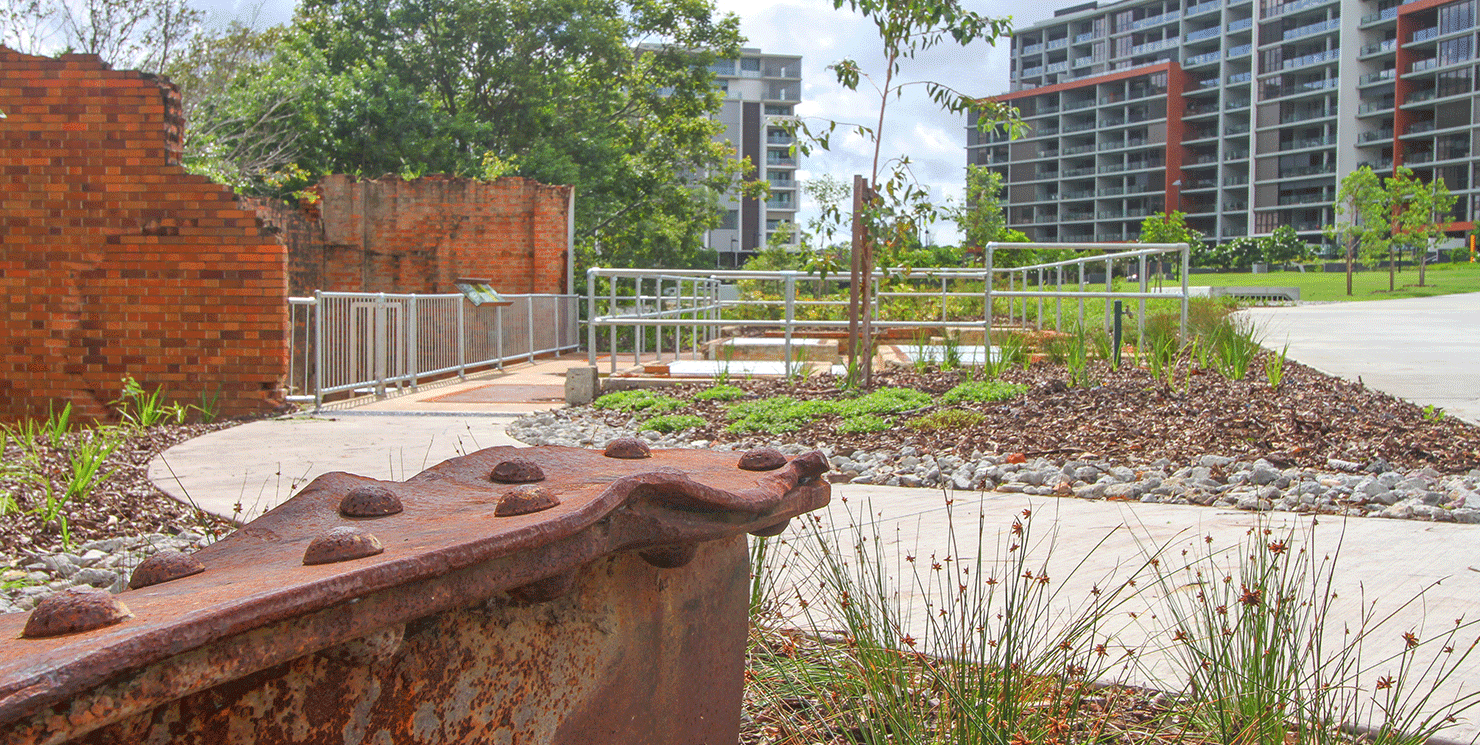 The park was designed to represent the historical land use, with a structured power station-themed playground, informative signage as well as several lookout locations within the old pump stations.